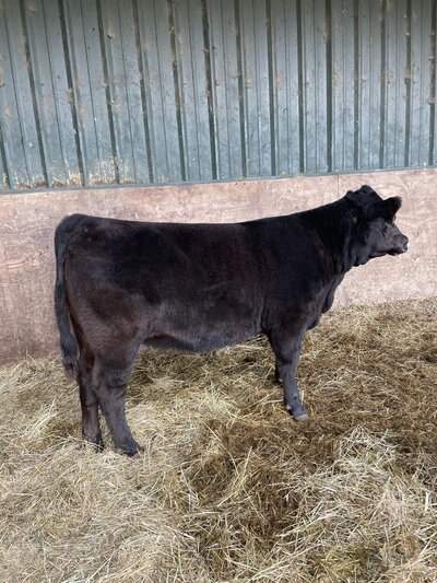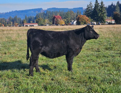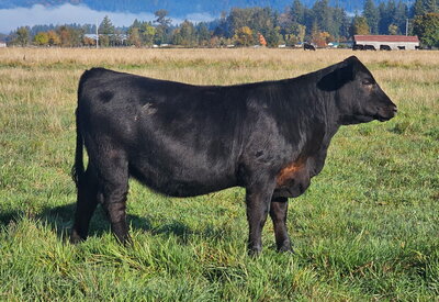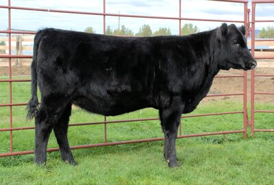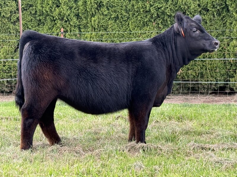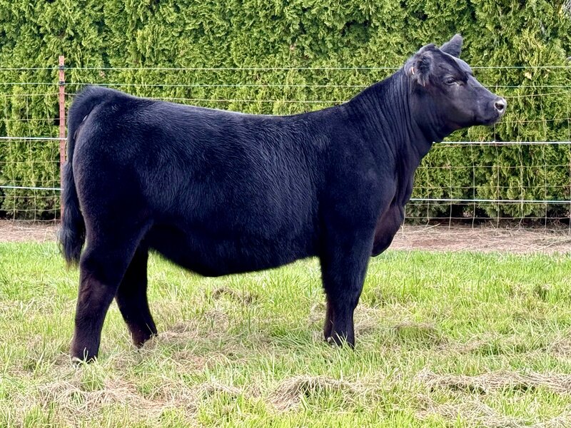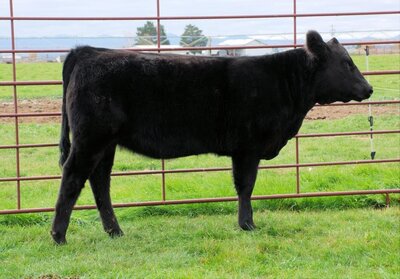 This moderate cowy April-born Black Angus female represents efficiency! Stemming from the Barbara cow family that has always been the maternal, milky females with a look. This heifer is backed up by the same cow family, which has topped the ROV Angus point standings with Ayres-Pascalar Easy Upgrade winning Sr Bull of the year. What we love most is her mother and grandmother's udder, maternal look, and great disposition! Actual BW- 85.