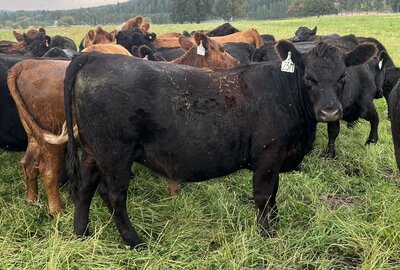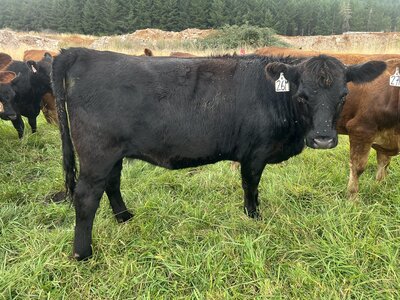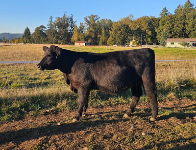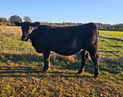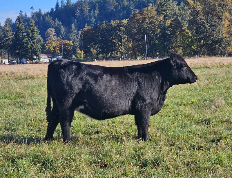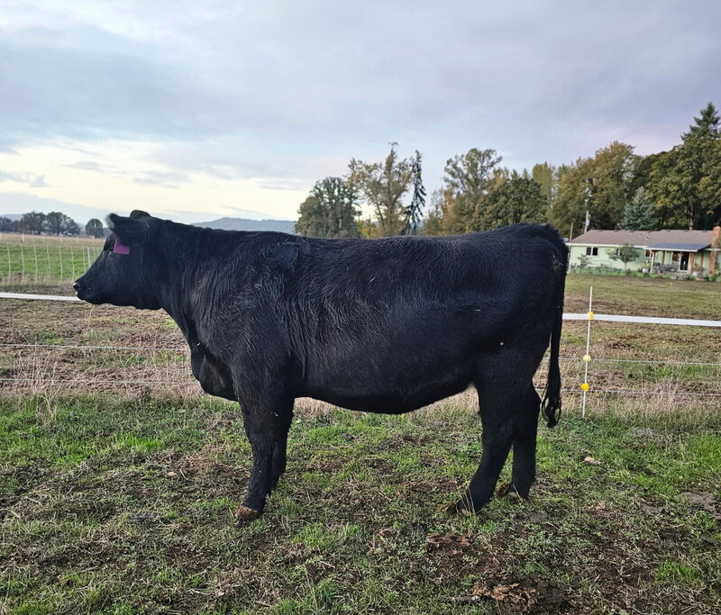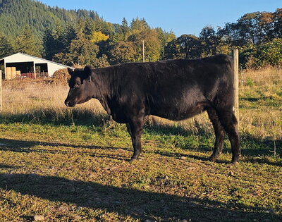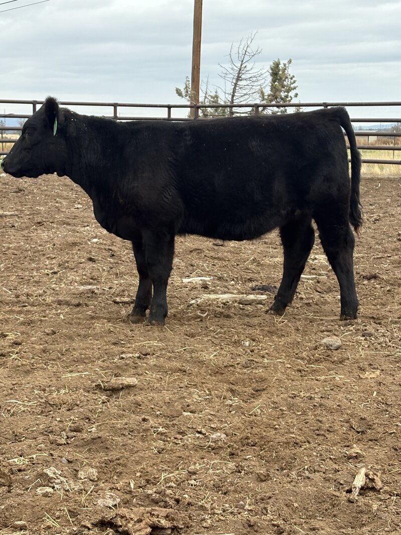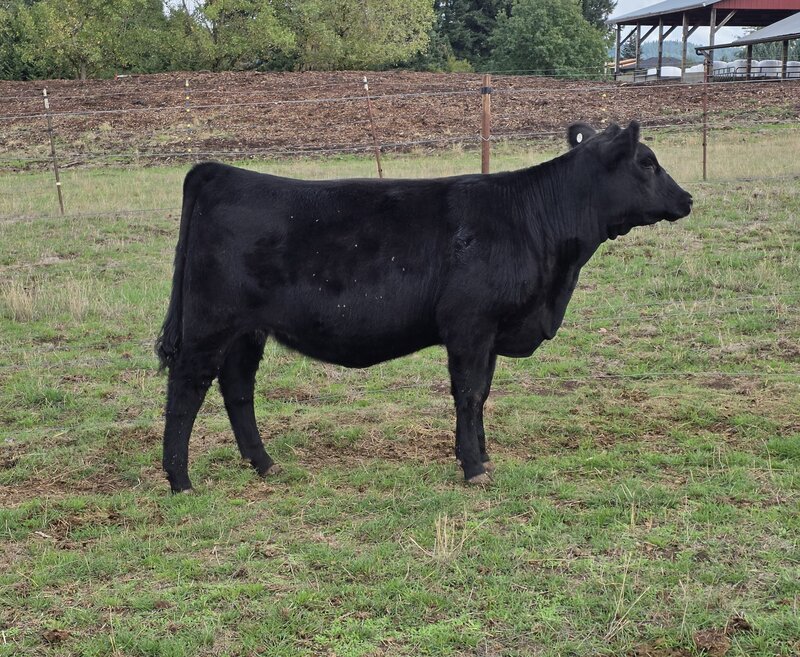 The only pen lot of bred yearling heifers, this group is like a pot of gold. These heifers have been developed on intensive grazing and will thrive in our Oregon environment. They are moderate and easy fleshing. They are commercial Black Angus with Pharo Cattle Company influence developed with a grass fed grazing system in mind for their management. The best part is that they all were bred the same day AI to the New Zealand calving ease Angus Bull, Ragitira Rebel 19-798, owned by Meadowslea Angus and Sheep. They are due May 9th, 2026. This group is entered in the Zoetis Inherit genomics evaluation.