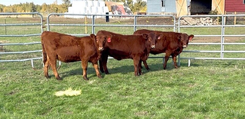Reg numbers ASA #4549311, ASA#4549306, and registration upon request pb Angus, these three March born ladies are by a calving-ease Angus E&B Plus One son. One purebred Angus, a ⅝ Angus - ⅜ Simmental, and a ½ Angus - ½ Simmental. They are out of some of our favorite cows and will be an asset to any cattleman’s herd. Should be moderate sized when full grown, 1,300 - 1,400#. Broke to tie. Very docile in the pens. The angus can be registered at buyers request.