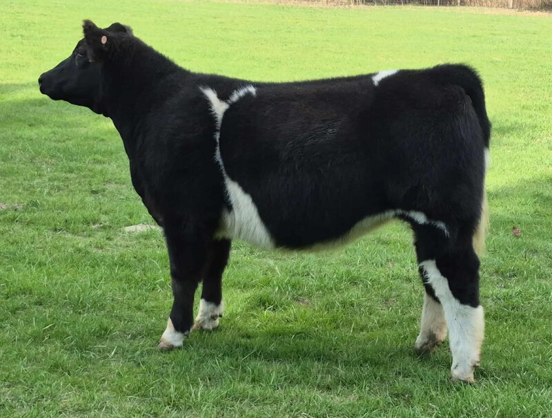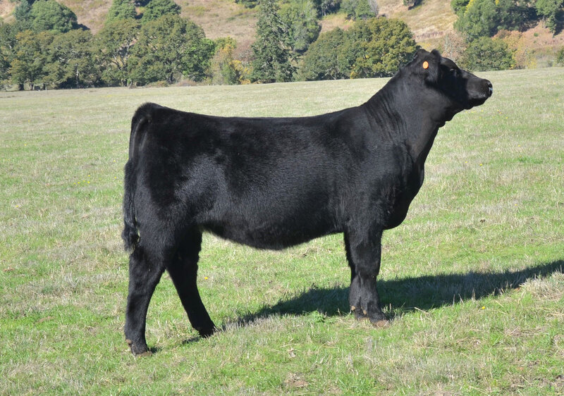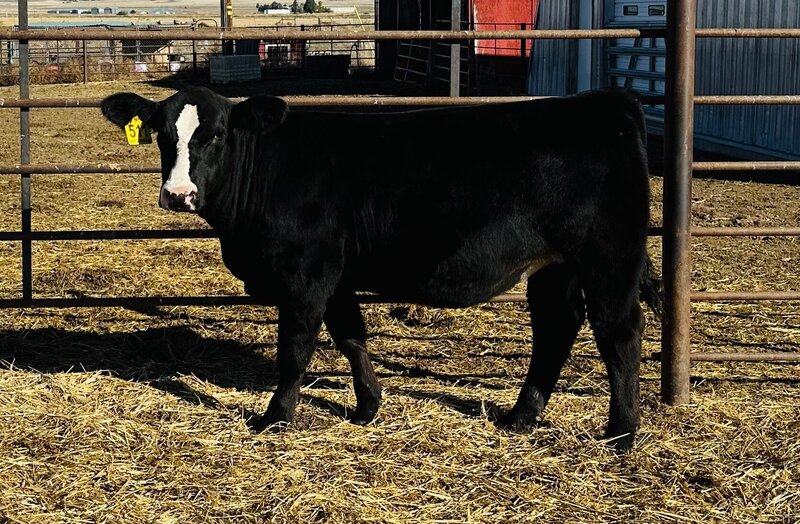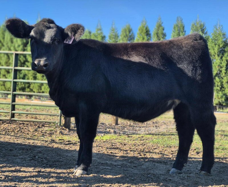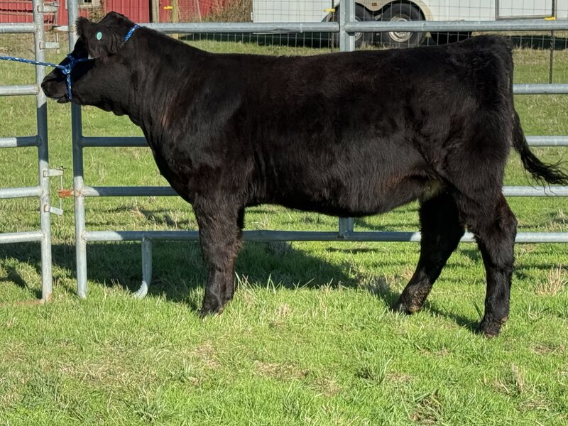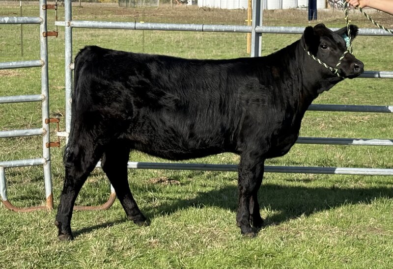 This Motive X Ruby March Black Angus female rides the line between beautiful replacement and stunning show prospect. Maternal sisters have already made their mark across the state, getting pieces of their divisions at jackpots and supremes at county fairs! A lot should be said when Cara has already retained two females out of "Ruby's" easy fleshing dam. We ask you to take a look at her video. What do you like best, her side profile or flawless stout back leg? Actual BW- 86.