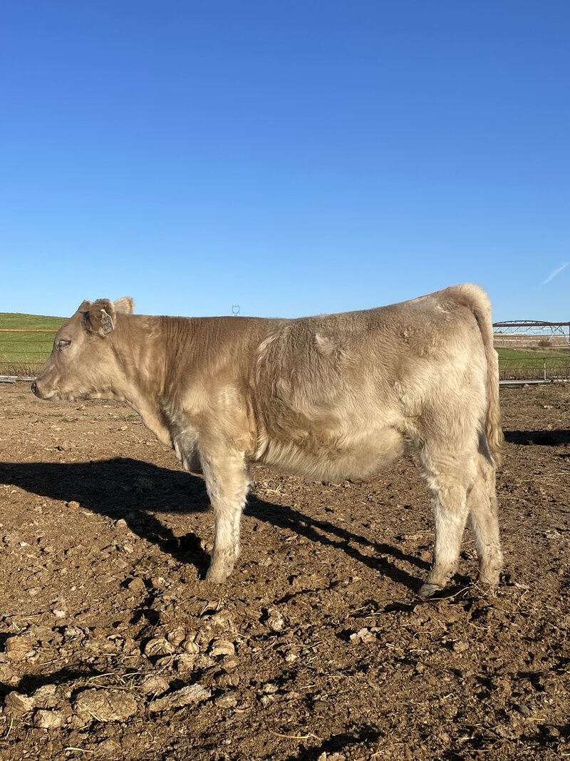 Here comes a registered Chi heifer from Maya Van Dyke. Maya purchased the dam from Arcuri Ranches in the 2023 Legends of the Fall sale and the dam went on to have a very successful show career. The heifer being offered is out of the iconic Strip Tease bull and he is one that needs no introduction to the backdrop. This heifer is one that you’ll find a lot of good in because she is extremely big bodied, stout legged, good haired, and one that is still neat necked. Combine this with her moderate frame size and massive top, not only will she be competitive in the show ring but also be a future steer generator. Proof’s in the pudding, this heifer already placed at the Oregon State Fair.