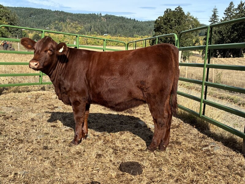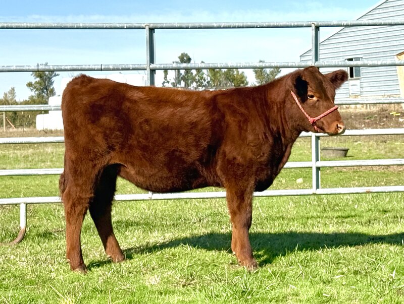 We are thrilled to be offering a Red Angus heifer of this quality for the 2025 All the Single Ladies sale. 2HFA Sue Ellen 311N is a heifer that has all the right pieces to be a stunning show heifer and a great cow down the road. From her stylish front that ties into her long spine and smooth hip, she’s got the look and style for the showring. In addition to her physical qualities, she also has the genetic backing. Her dam was sold in the 2021 Bet on Red sale and is out of the Winter Brook Cattle Company elite donor WB Serenity 7128, who was Grand Champion Red Angus Female at the 2018 Oregon State Fair and reserve in her division as a calf in Reno at the Red Western Classic and has produced many champions for their program over the years.